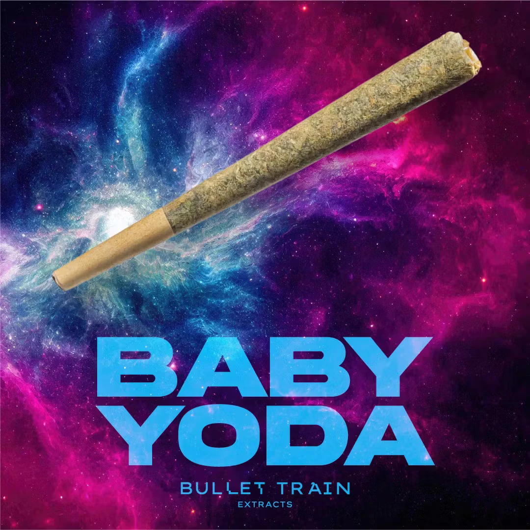Bullet Train’s Baby Yoda preroll offers a gentle aroma of sweet citrus, fresh herbs, and light earth. On the palate, it’s smooth and flavorful, with creamy notes and a soft, lingering herbal finish. The effects of Baby Yoda are believed to be sedating and tingly. Reviewers on Leafly say this weed strain makes them feel aroused, uplifted, and focused, but it won’t team you up with a Mandalorian.