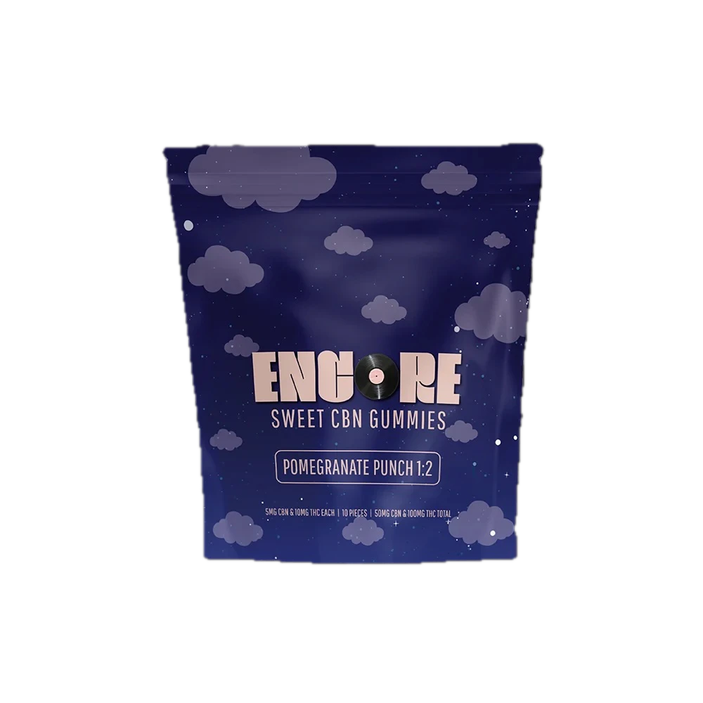 Slow the tempo with the rich and tart pomegranate flavor of Pomegranate Punch, each gummy is packed with 5 mg CBN and 10 mg THC for a smooth, sleepy fade-out. Made with Pectin. Dairy Free, Gluten Free, Nut Free.