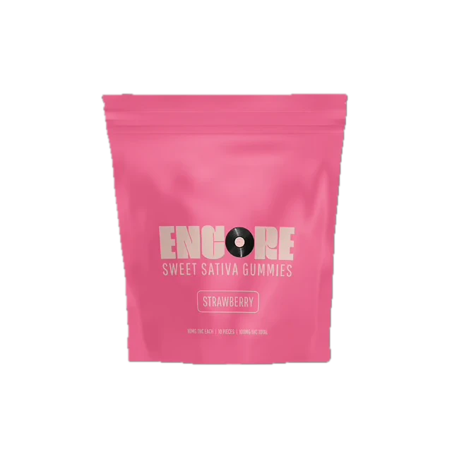 Cue the sunshine with Sweet Strawberry Sativa, a burst of strawberry jam flavor and sativa energy for bright moods and bold moves. Mixing sugary sativas, sweet indicas, sour CBD ratios, and full-spectrum RSO infusions headline the Encore lineup. Juicy and delicious, classic fruit flavors and the perfect pectin-based consistency are always center-stage.