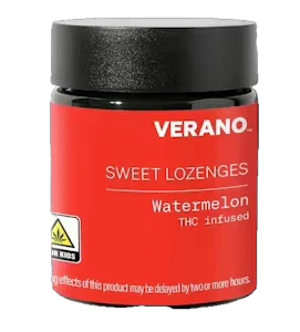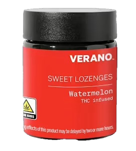 The Watermelon Sweet Lozenge from Verano is a cannabis-infused hard lozenge that delivers a juicy, fruit-forward watermelon candy flavor in a discreet, smoke-free edible format. It’s a 10-pack with a total of 100 mg THC per package — typically 10 mg per lozenge, making dosing predictable and consumer-friendly.