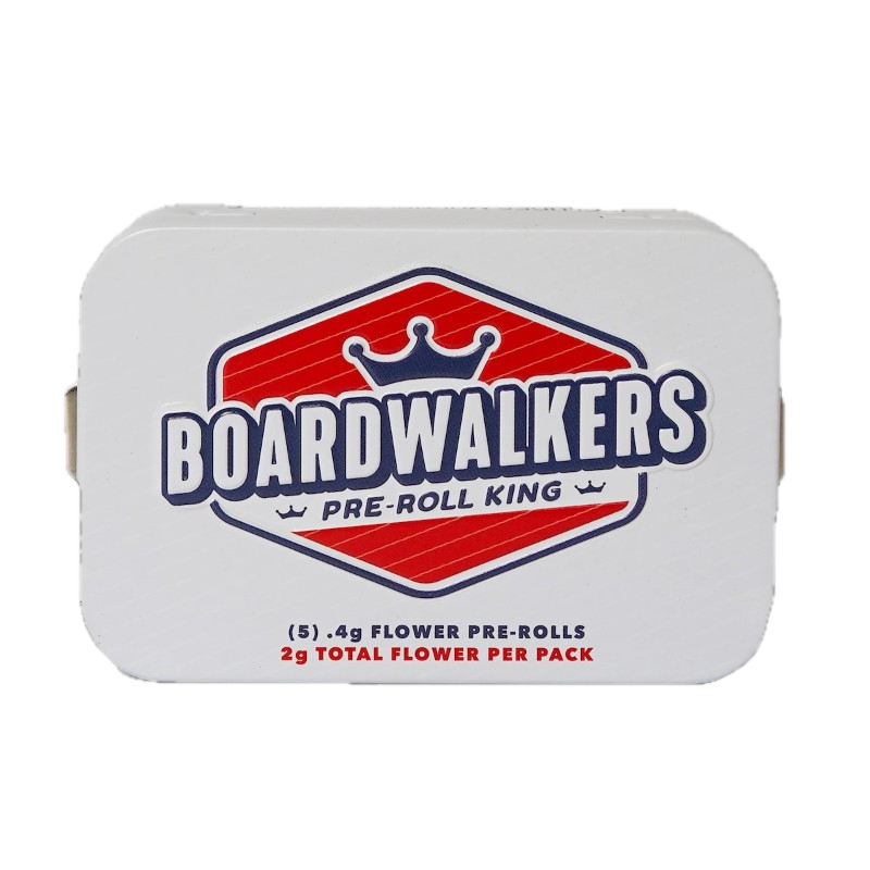 Cookies n' Chem is a hybrid with noteworthy lineage of Cookies n' Creme and Stardawg. It’s commonly described as having a sweet, creamy cookie-dough character up front, followed by sharp diesel and skunky funk as it opens up. These Boardwalkers prerolls are built for an even burn, in a ready-made convenient .4 gram preroll (5 per pack, 2 grams total).